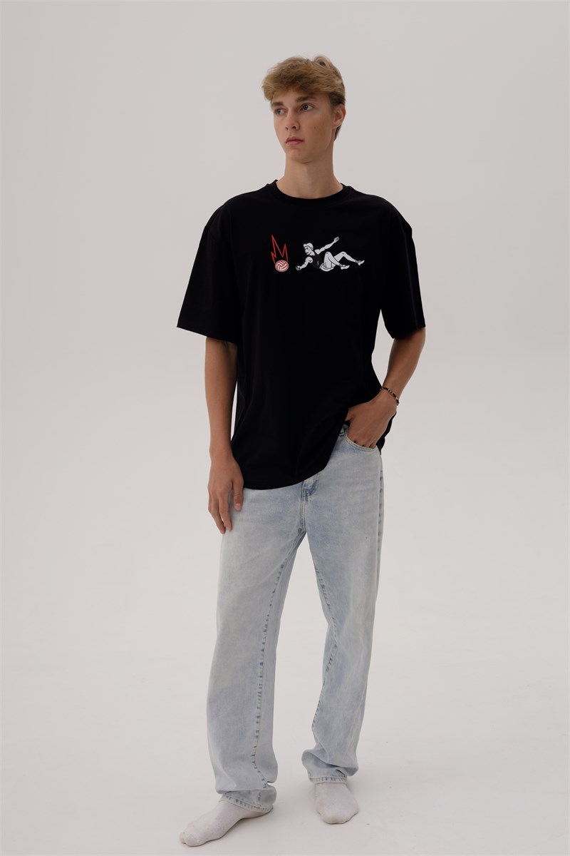 Эта футболка — часть коллекции мемных принтов «Стиль Игры», в которых каждый волейболист узнает себя. На изображении — игрок в падении, тянущийся за мячом, но не дотянувшийся буквально на долю секунды.